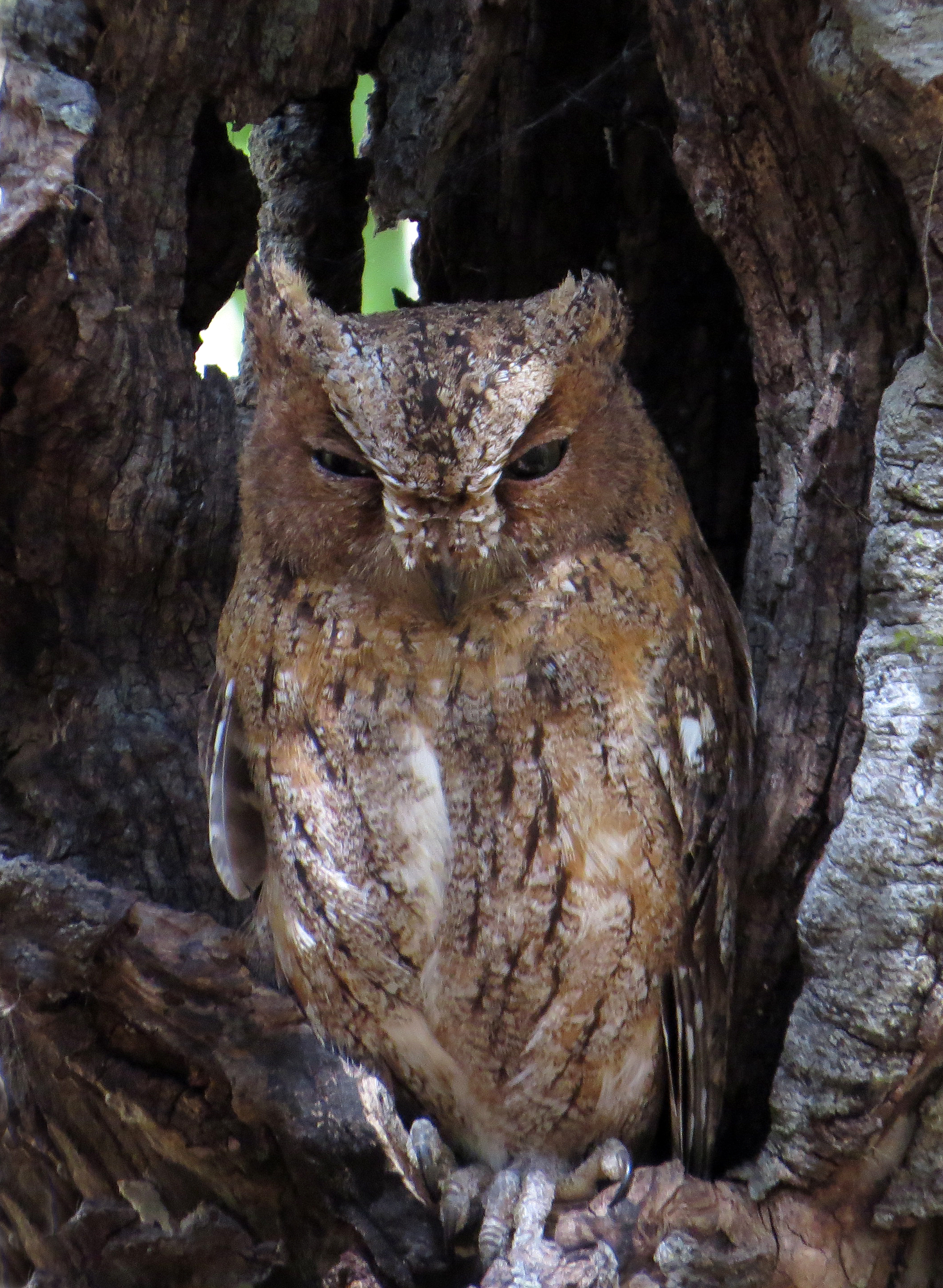 This Torotoka Scops Owl, the dry country equivalent of Rainforest Scops Owl, was found at its daytime roost.
