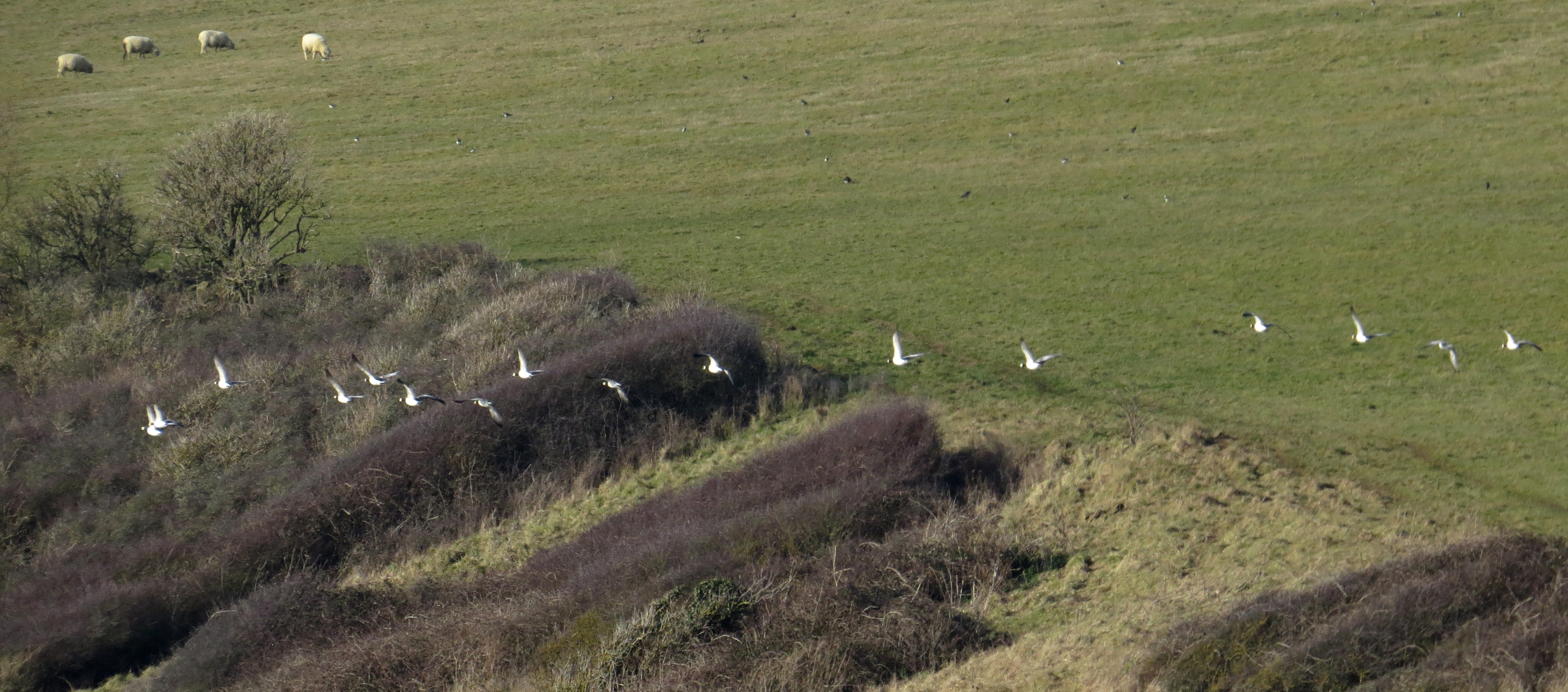 …. but we had come to see this flock of 16 Barnacle Geese. Barnacle Geese from Svarlbard and Greenland winter in Scotland but there is also a substantial number that winter in Holland It is debatable whether the occasional flock that turns up in Dorset in winter comes from the Dutch wintering population or from the feral population.