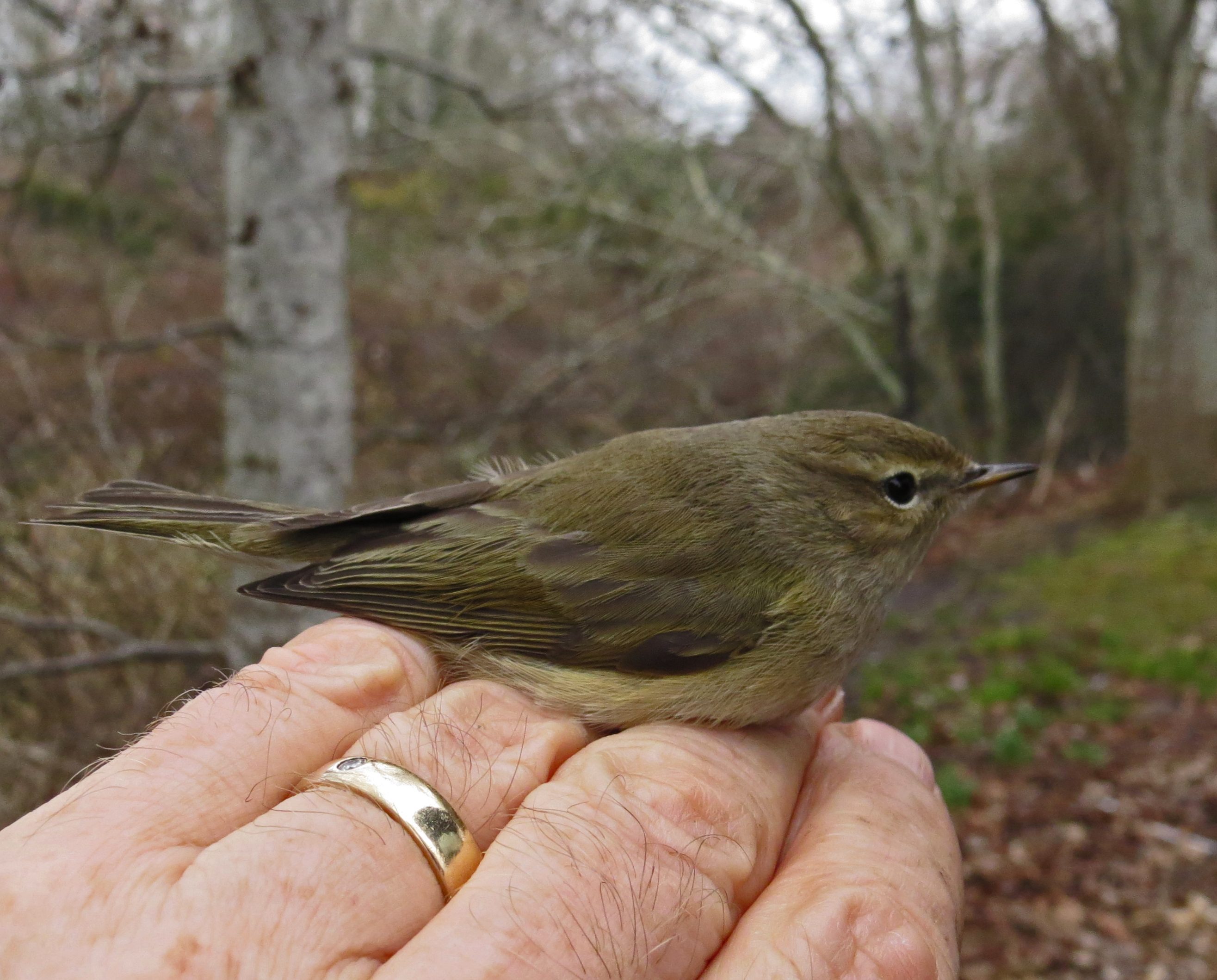 Our main reason to ring at the Fleet’s Lane site is to study wintering Chiffchaffs. Chiffs, normally a summer visitor arriving from late March onwards and departing from September to October, have become an increasingly common bird in winter. Nobody knows if the wintering birds are British breeders that have opted to stay for the winter or migrants from elsewhere. We have retrapped three or more birds over a number of winters, showing winter site fidelity and have failed to retrap wintering birds after March indicating that they depart to breeding grounds in spring. This individual is typical of the nominate western European race colybita.