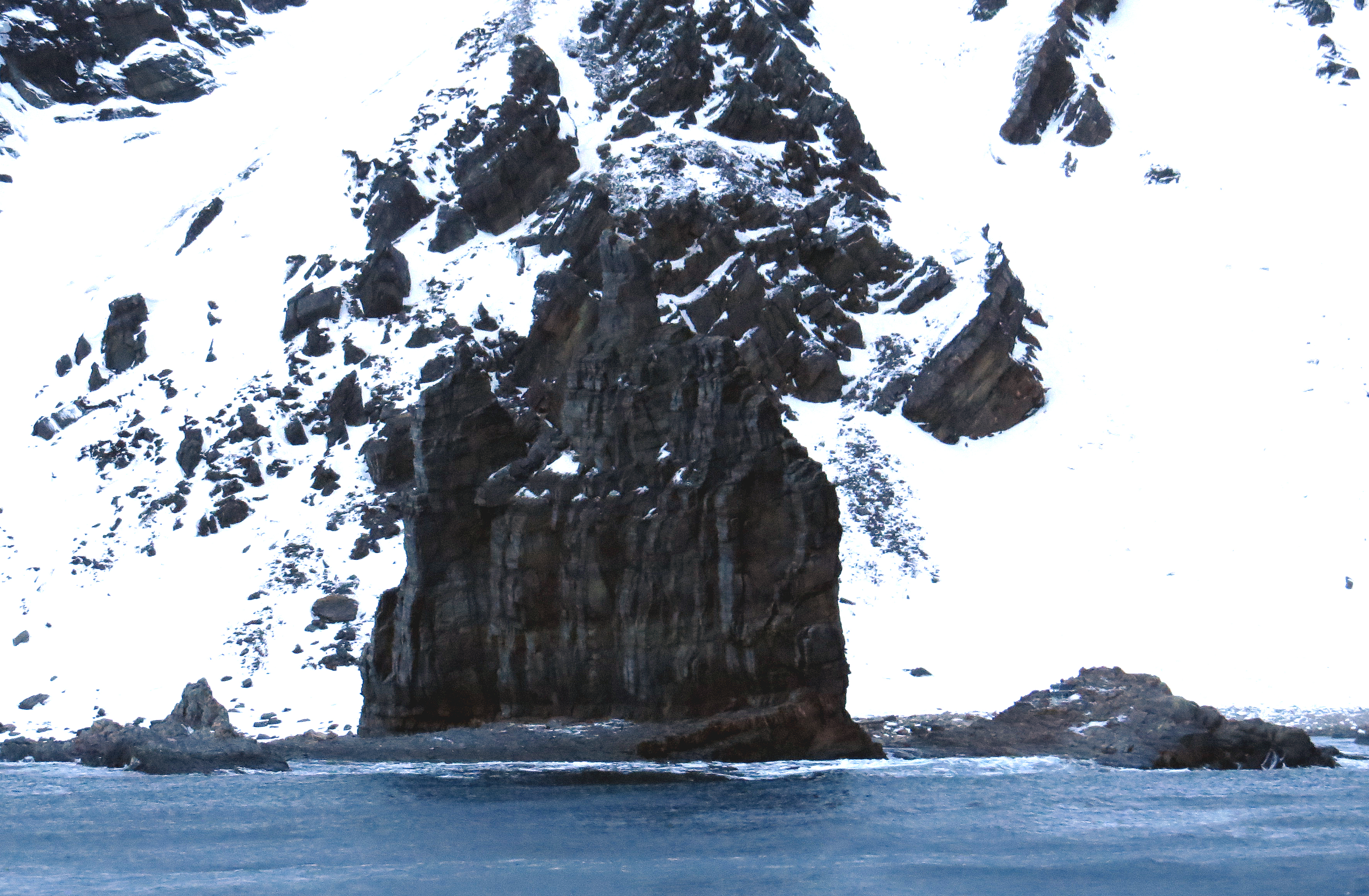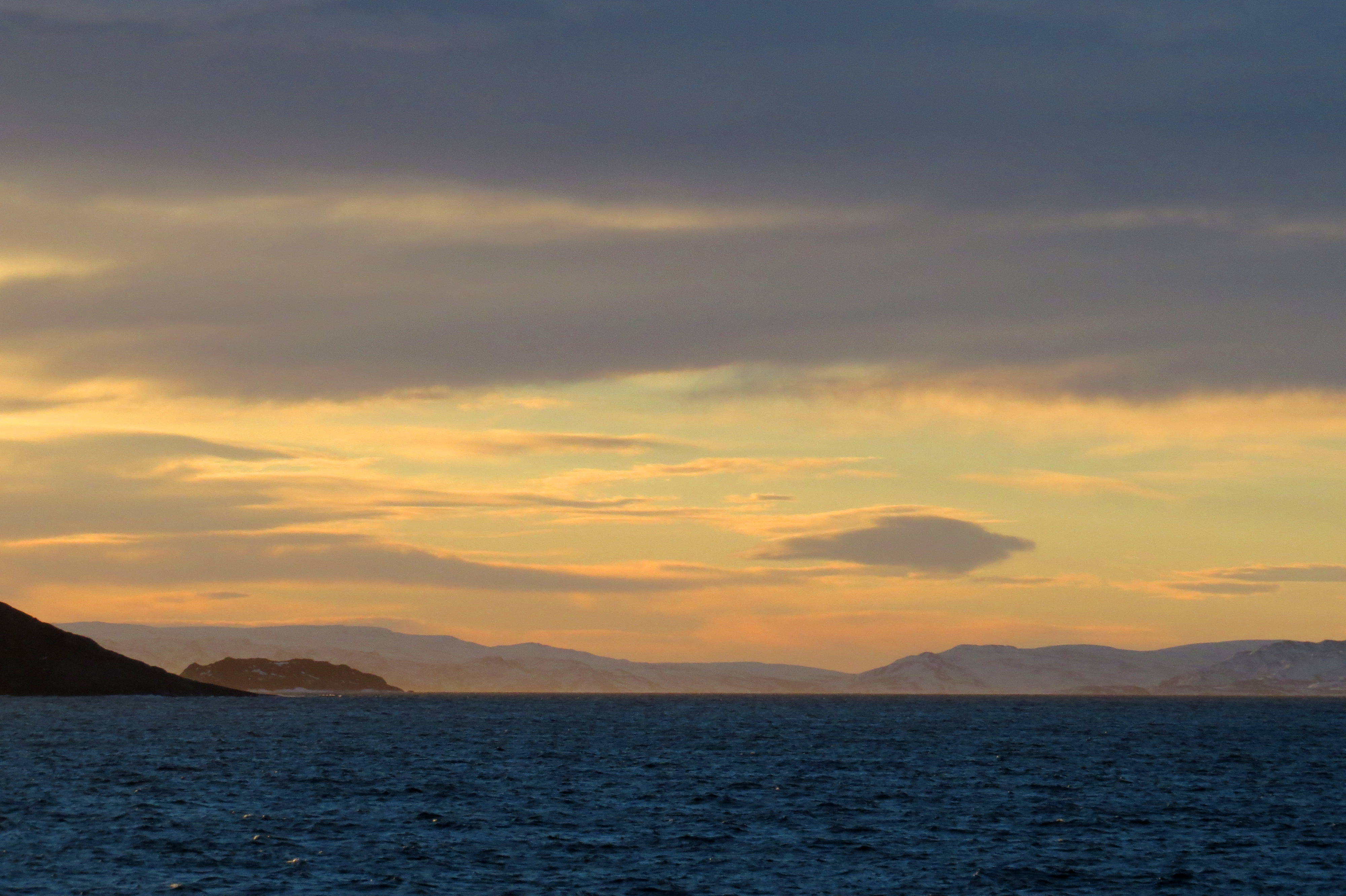 The overnight passage was quite horrendous, the wind increased to force 10 and we were sailing straight into it. That said, the boat remained remarkably stable but we had a pretty bad night’s sleep as something came loose in the roof space above us and crashed and banged with every lurch of the ship. In the late evening we went up to the top deck to see the aurora, sheltering behind the funnel from the wind and ambient light.Very dramatic, with back-lit spray billowing around and above us whilst the green fingers of the northern lights danced in the background. The following morning things had calmed considerably as this photo shows.