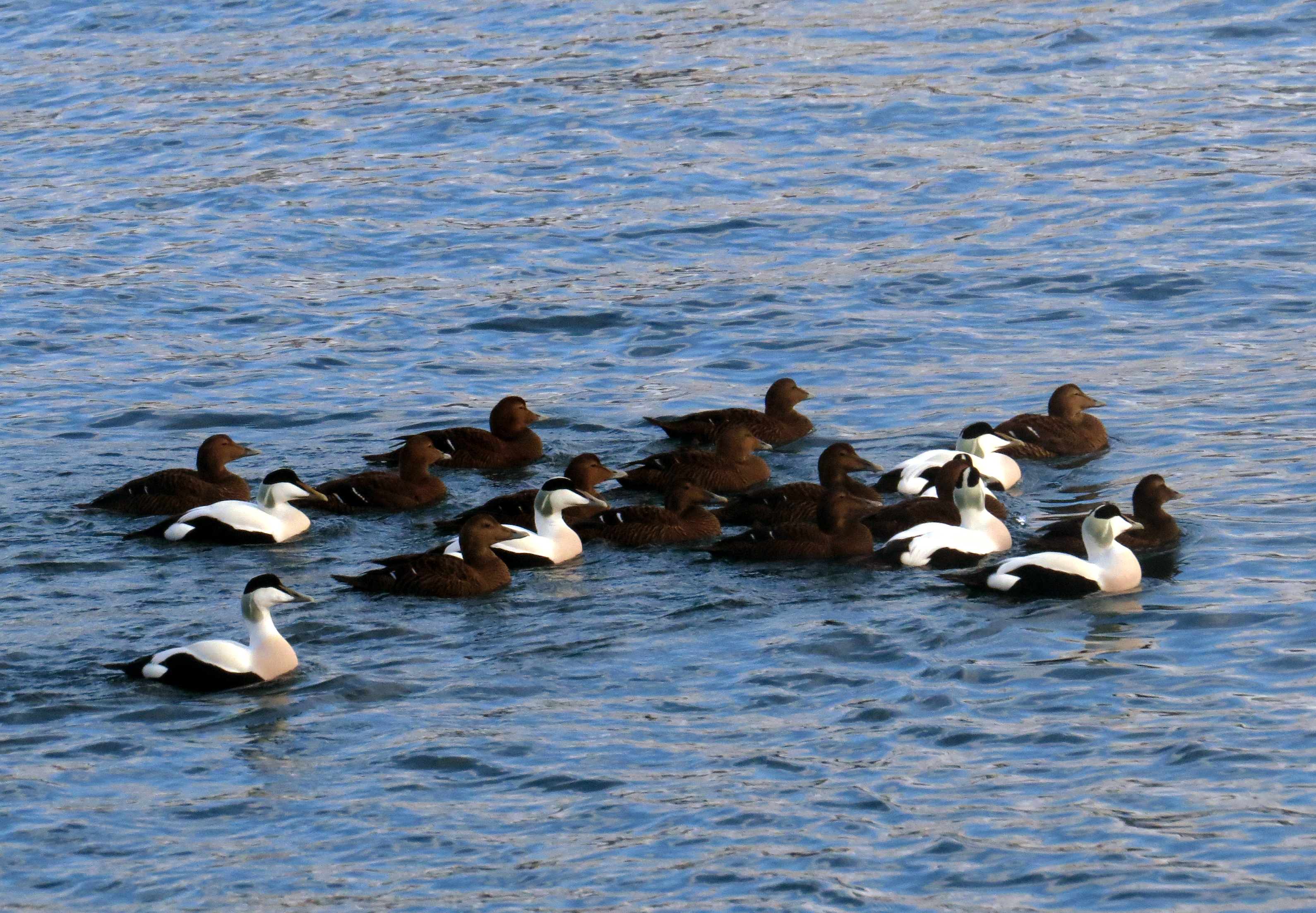 A flock of Common Eider in the harbour gave better views than was possible from the ship.