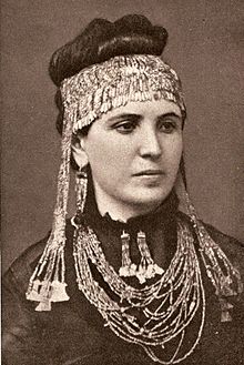Schliemann’s young wife Sophia, wearing the ‘Jewel’s of Helen’ part of the so-called ‘Priam’s Treasure’ that he unearthed at the site. Schliemann smuggled the treasures out of Turkey to Germany where they were taken after WW2 by the Red Army and now reside in the Pushkin museum in Moscow. The level the treasure was found corresponds to Troy II, dated to about 2500 BC whilst the Troy of the Homeric tales lies at Troy VII some 1300 years later, so they have no association with Helen or King Priam! Photo taken in c1874 copied from Wikipedia.