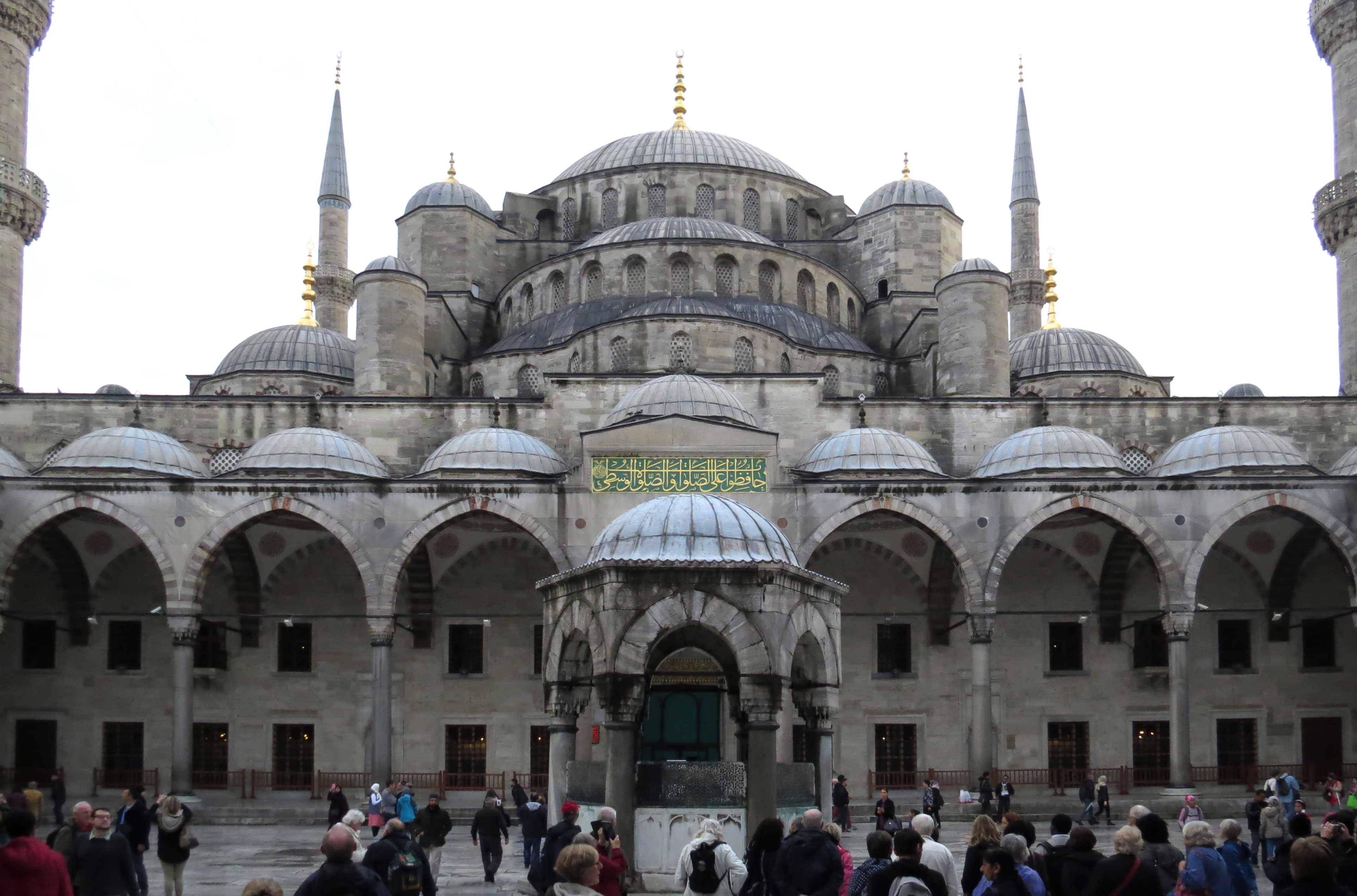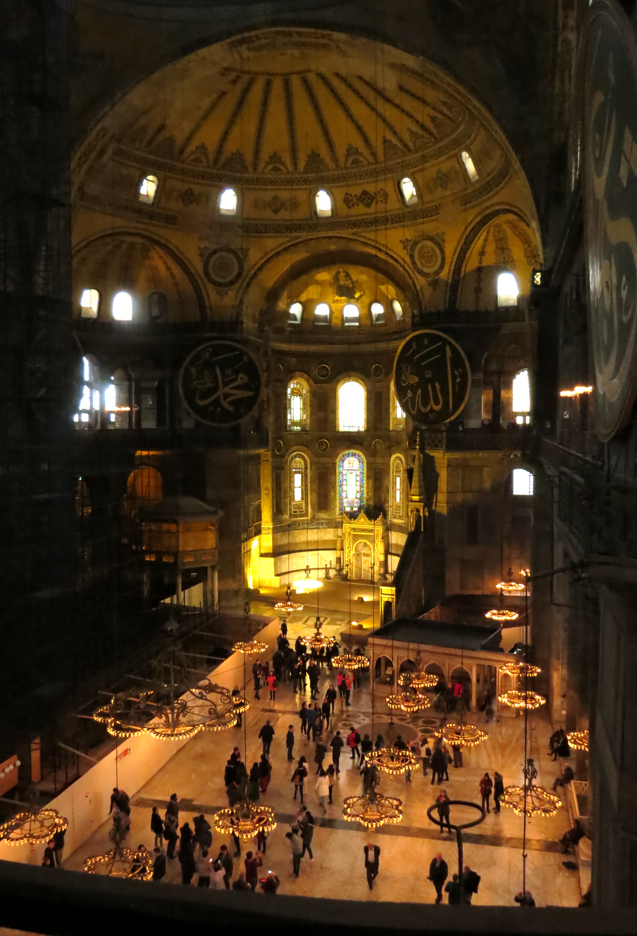 Hagia Sophia (from the Greek ‘Holy Wisdom’) originally a basilica constructed from 537 AD onwards during the reign of Byzantine Emperor Justinian. It served as a Greek Orthodox cathedral and seat of the Patriarch of Constantinople until 1453 (except for 57 years in the 13th century after the 4th Crusade when it became a Roman Catholic cathedral). With the rise of the Ottoman Empire it was converted into a mosque until the secular Turkish State under the leadership of Mustafa Kemal Atatürk reopened it as a museum in 1935. The view from the balcony is especially awe-inspiring. The original Christian altar can be seen at the far end of the building. I last visited Hagia Sophia in 1999 and was disappointed to see that scaffolding obscured the view. I was even more disappointed to see that scaffolding was still there 16 years later (on the left hand side of this photo) but of course old buildings need renovating if they are to be preserved for future generations.