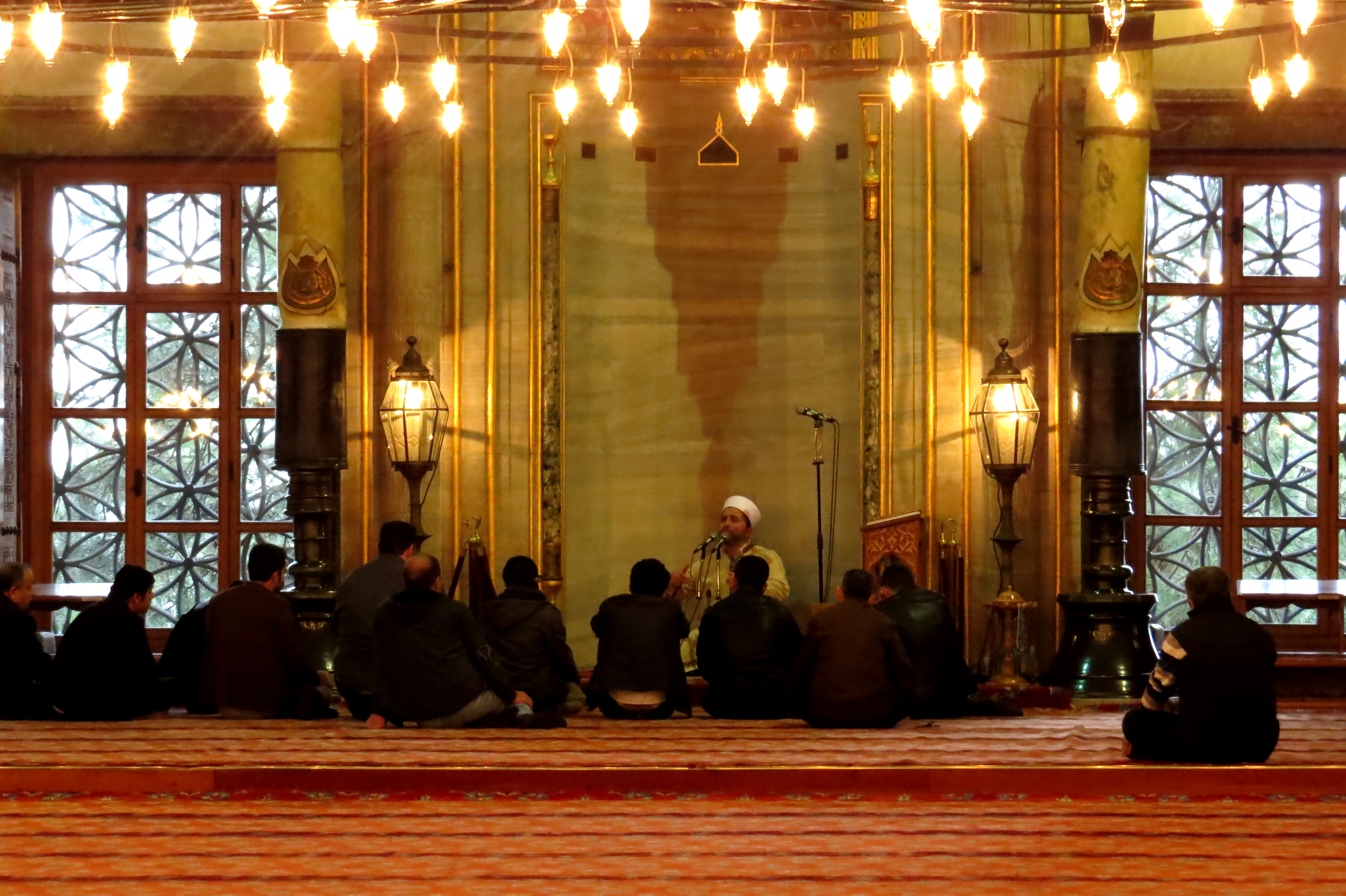 An Imam speaks to his students and one point explained the basic concepts of Islam in English over the loudspeakers.