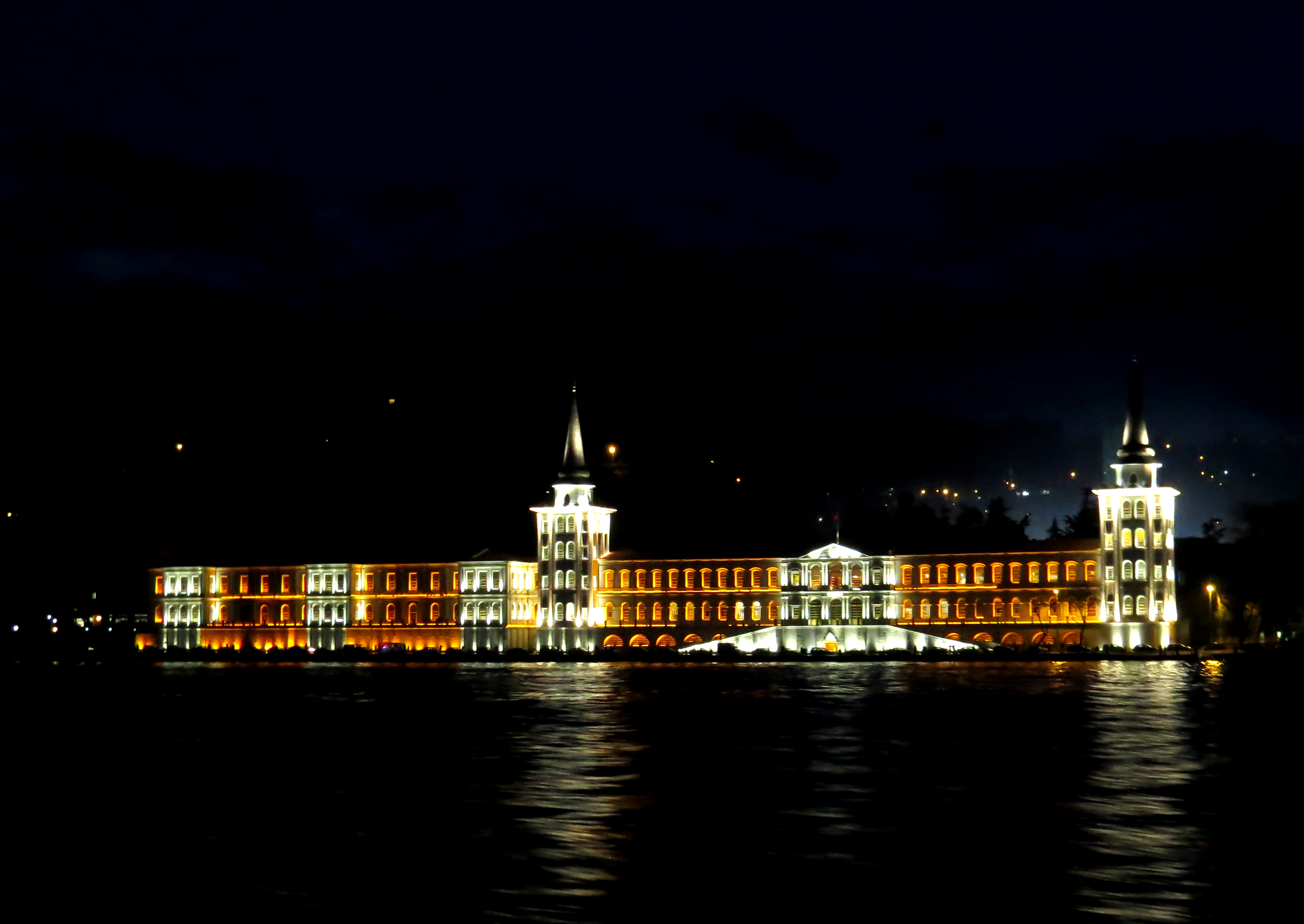 Returning down the Asian side we had great views of the floodlit palaces ….