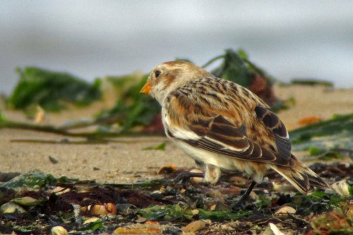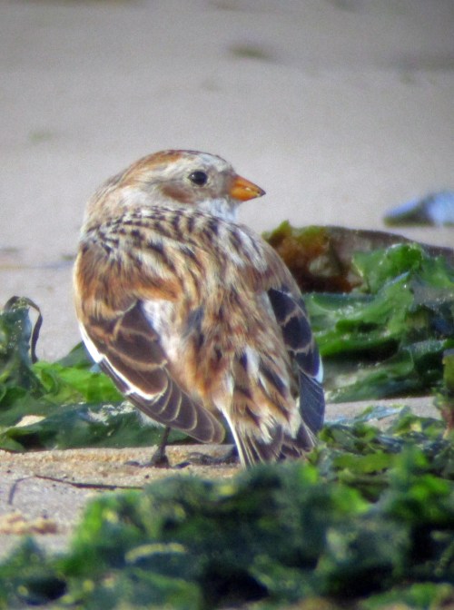 Our target was this Snow Bunting which was feeding on the beach where Shell Bay meets Studland Bay. Although a regular wintering bird in reasonable numbers on the east coast, I have only seen this species seven times in Dorset, all singles except in early ’82 when a flock of 6-7 occurred in the Studland area.