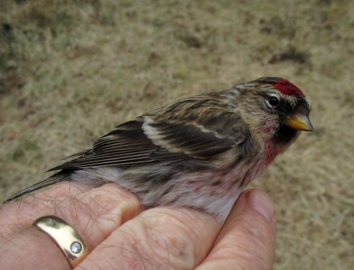 We usually catch a few Redpolls in the autumn on migration at Durlston but its a long time since I’ve ringed one in it’s its breeding finery. We have caught a Redpoll that was ringed elsewhere and look forwards to learning where it came from and when it was ringed.