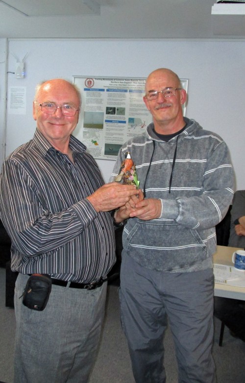 At the end of every AGM Bob awards the so-called ‘Stoate Award’ for the worst data submission in the last year. This time he performed it in the manner of the Oscars, calling on Shaun to open the envelope and read out the ‘winner’, then declaring a mistake had been made and then having it read out again. As expected I was the recipient, but I pointed out that I entered 64% of all the data submitted last year and therefore more mistakes were to be expected. The actual award is an unidentifiable ornamental bird, I’d rather it was the stuffed Eagle Owl in corner of the photo.
