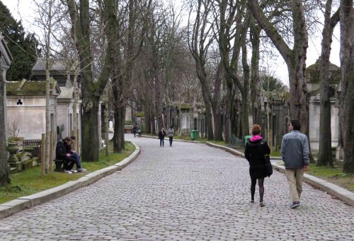 The cemetery holds a remarkable number of tombs of famous French artists, musicians and politicians plus some foreigners who have died in the city. We didn’t have time to seek out graves of the twenty or so famous people who I was familiar with but we did locate the final resting place of Oscar Wilde (traditionally female fans of his works kissed the enormous headstone wearing bright red lipstick, but due to the fear of damage the headstone has been encased in glass).