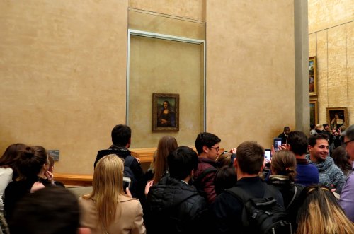 Due to a number of attempts to damage the painting over the years it is now enclosed in a climate controlled chamber behind bullet proof glass. Just getting to see this masterpiece is tricky due to the huge crowds that throng the Louvre. Of course people want a photo but why do they have to use a selfie stick to get themselves in the picture!