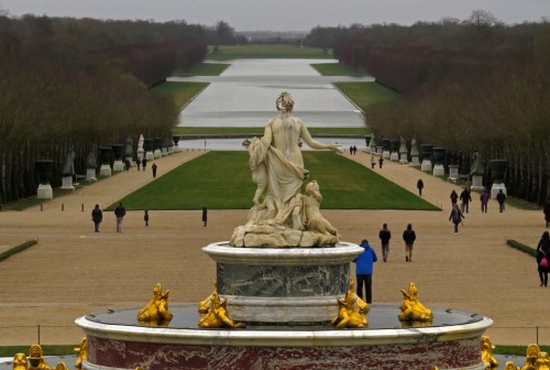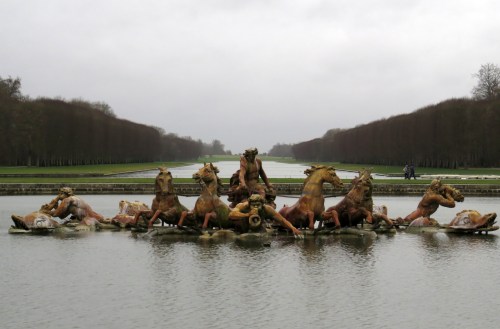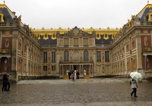 Once past the golden gates we could clearly see imposing facade of Louis XIV’s famous palace. From Wikipedia: The Palace of Versailles, Château de Versailles, or simply Versailles is a royal château in Versailles in the Île-de-France region of France. When the château was built, Versailles was a small village dating from the 11th century; today, however, it is a wealthy suburb of Paris, some 20 kilometres (12 miles) southwest of the centre of the French capital (point zero at square in front of Notre Dame). Versailles was the seat of political power in the Kingdom of France from 1682, when Louis XIV moved the royal court from Paris, until the royal family was forced to return to the capital in October 1789, within three months after the beginning of the French Revolution. Versailles is therefore famous not only as a building, but as a symbol of the system of absolute monarchy of the Ancien Régime.