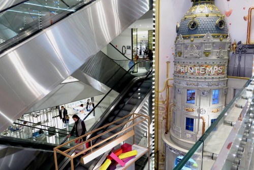 John had agreed to meet up with a couple of his old friends from work and had come into Paris to meet them. we met up with him at the Gare du Lyons and from there he showed us another part of Paris where he once lived (and where I twice visited him in the 70s). We entered the enormous Printemps store, not because we wanted to buy anything ….