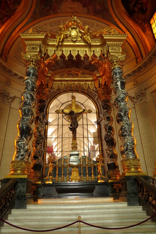 Louis XIV had this royal chapel with its beautiful dome built in 1708. Beyond the crucifix and the glass panel is the much plainer chapel (as apparently ‘fits their status’) built for the war veterans.