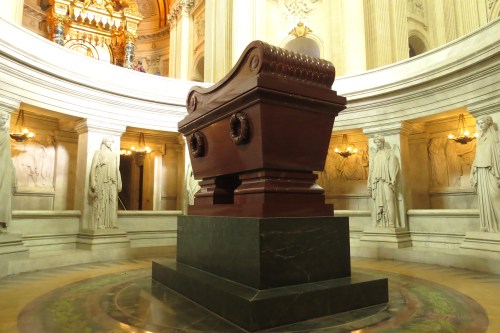 Below the dome now rests the tomb of Napoleon Bonaparte. Napoleon died and was buried on St Helena in 1821 where he had been exiled by the British. In 1840 permission was granted for his remains to be returned to Paris where a state funeral was held.
