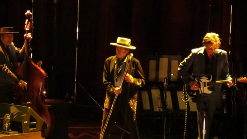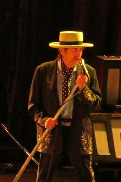 So what of the performance itself? Dylan never played the guitar or harmonica, never even spoke to the audience, introduced a number or the band or even said farewell. Most of his lyrics couldn’t be heard and apart from some covers of songs by Sinatra, I only recognised three numbers (although that’s my fault for not getting to know his post 1970 work better) ….