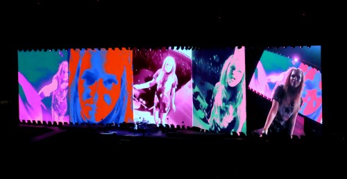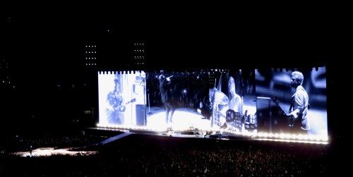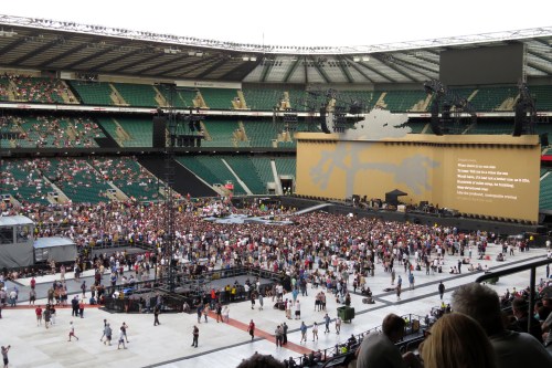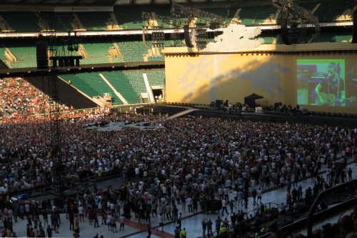 We arrived in good time at the stadium. We had good seats allowing a clear view of the stage. The huge video wall, 200 long and 45 ft high dominated the arena and dwarfed the performers.