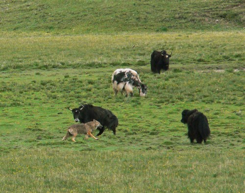 …. that is until a few miles down the rough road we saw a Grey Wolf harrying some Yaks.