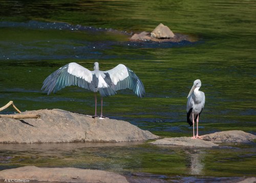 Asian Open-billed Stork is one of the rarer of the world’s 17 stork species. It’s mandibles have evolved so that only the tips close, leaving the sides ‘open’ so they can manipulate their water snail prey. (Photograph copyright Alec Gillespie).