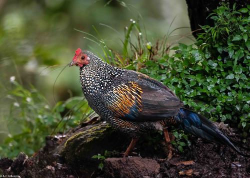 … and the gorgeous Grey Junglefowl. It is of course the Red and not Grey Junglefowl that is the ancestor of domestic chickens. At last I have seen all four species of ‘wild chickens’ (photo copyright Alec Gillespie).