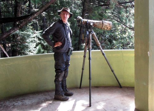 Alec Gillespie with camera gear. Camera, lens, tripod and associated accessories weigh around 14kg! Rather more than I’m prepared to lug around tropical forests I’m afraid, but he does produce some superb photos.