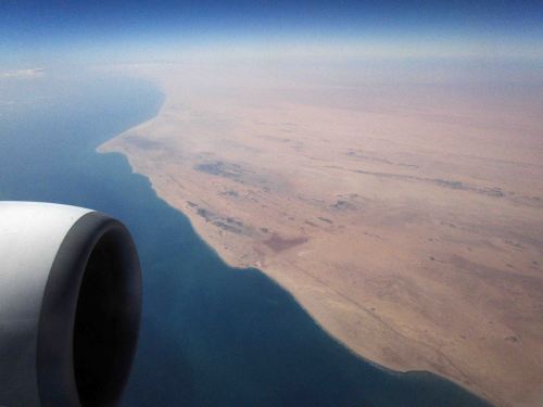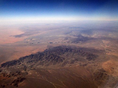 However flying back from Cochin in South India to Muscat in Oman with Oman Air I had some excellent views of this spectacular country from above, the air was clear and dry, the view largely unimpeded. We crossed the coast somewhere near the easternmost point of the country, flew over the open desert and the rugged Al Hajar mountains before descending to the capitol Muscat.