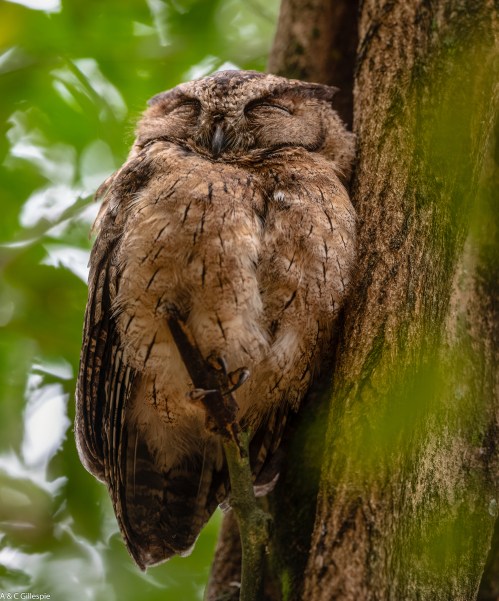 … a sleepy Indian Scops Owl … (Photo copyright Alec Gillespie).