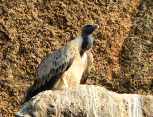 … the now critically endangered Indian Vulture. All species of vulture in Asia have declined dramatically in recent years with losses of 99.99% reported. Once common species like White-backed and Indian Vulture (seen here) are now rarities due to the use of the drug Diclofenac or Volterol for veterinary purposes. Eating the carcass of a cow treated with this drug will cause liver failure in vultures and a single dead cow (of which there are many in India as religious beliefs prevent them from being used for meat so they wander freely in town and countryside) can poison hundreds of vultures. See this Indian Vulture at its nest was a real treat even if it was a bit distant. Here’s a photo I’ve added to the post later taken by the tour leader. Copyright Dave Farrow/Birdquest.