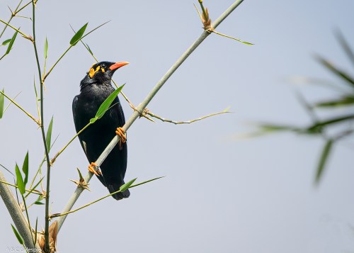 To access some of the best forest we had to cross a lake on a raft. Near the embarkation point we had good views of Southern Hill Myna … (Photo copyright Alec Gillespie).