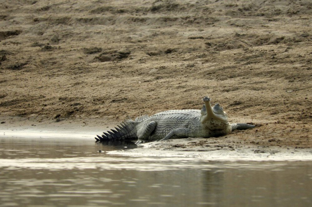 We set off in a boat like this, initially it was quite overcast but as the afternoon progressed the murk cleared. The Chambal is a tributary of the Yamuna River, which itself is a tributary of the Ganges.