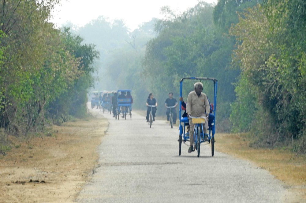 Our journey from the hotel to the park and around the park itself was by bicycle rickshaw with our bird guide cycling along beside. In true Indian fashion we were taken the wrong way down a duel carriageway!