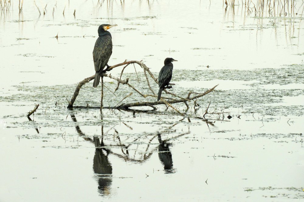 Little and Large: The saw three species of cormorant, here are the eponymous Great Cormorant and Little Cormorant. The third one (not shown) breaks the naming convention and goes by the name of Indian Cormorant.