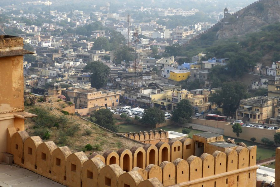 More from Wikipedia: Amer Fort is a fort located in Amer, Rajasthan, India. Amer is a town with an area of 4 square kilometres located 11 kilometres from Jaipur, the capital of Rajasthan. Located high on a hill, it is the principal tourist attraction in Jaipur. The town of Amer was originally built by Meenas, and later it was ruled by Raja Man Singh I. Amer Fort is known for its artistic style elements. With its large ramparts and series of gates and cobbled paths, the fort overlooks Maota Lake, which is the main source of water for the Amer Palace.