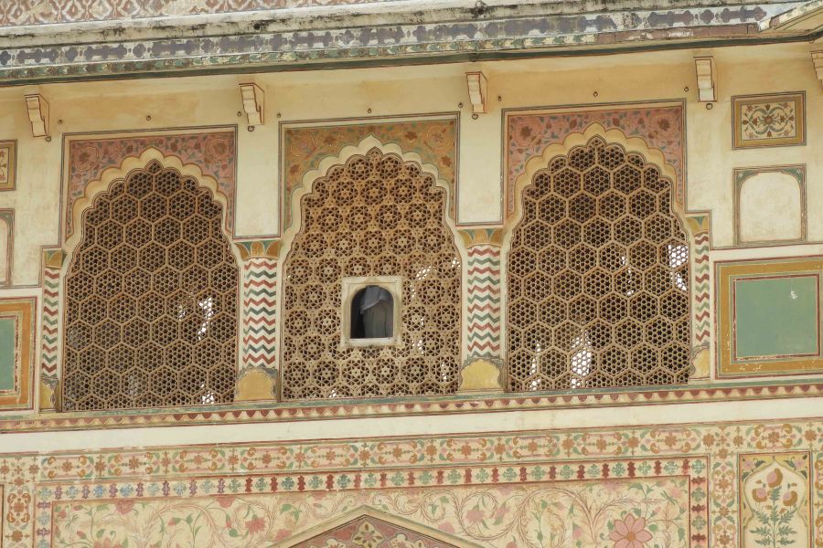 Incredibly fine ‘filigree’ stone work was employed to produce these screens, to allow maximum ventilation whilst providing the women of the court (who were not allowed to mix with outsiders) the opportunity of watching proceedings in the plaza below.