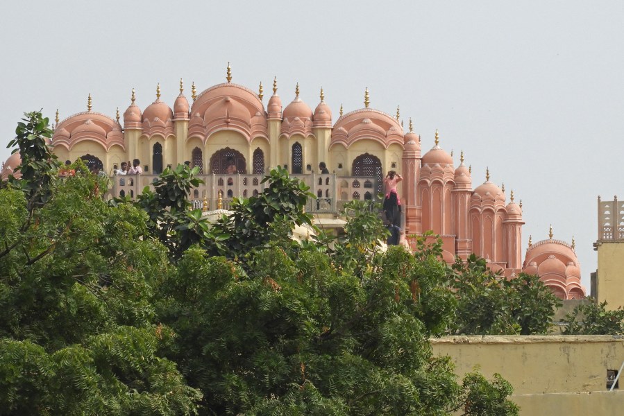 From Wikipedia: Hawa Mahal (English translation: “The Palace of Winds” or “The Palace of Breeze”) is a palace in Jaipur, India approximately 300 kilometres from the capital city of Delhi. Built from red and pink sandstone, the palace sits on the edge of the City Palace, Jaipur, and extends to the Zenana, or women’s chambers. The structure was built in 1799 by Maharaja Sawai Pratap Singh, the grandson of Maharaja Sawai Jai Singh, who was the founder of Jaipur. He was so inspired by the unique structure of Khetri Mahal that he built this grand and historical palace. It was designed by Lal Chand Ustad. Its five floor exterior is akin to honeycomb with its 953 small windows called Jharokhas decorated with intricate latticework. The original intent of the lattice design was to allow royal ladies to observe everyday life and festivals celebrated in the street below without being seen, since they had to obey the strict rules of “purdah”, which forbade them from appearing in public without face coverings. This architectural feature also allowed cool air from the Venturi effect to pass through, thus making the whole area more pleasant during the high temperatures in summer. Many people see the Hawa Mahal from the street view and think it is the front of the palace, but it is the back. In 2006, renovation works on the Mahal were undertaken, after a gap of 50 years, to give a facelift to the monument at an estimated cost of Rs 4.568 million.[6] The corporate sector lent a hand to preserve the historical monuments of Jaipur and the Unit Trust of India has adopted Hawa Mahal to maintain it.[7] The palace is an extended part of a huge complex. The stone-carved screens, small casements, and arched roofs are some of the features of this popular tourist spot. The monument also has delicately modelled hanging cornices.