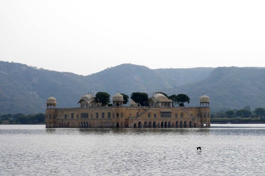 On the way back into Jaipur we stopped briefly at the Water Palace or Jal Mahal. From Wikipedia (again): The Jal Mahal palace is an architectural showcase of the Rajput style of architecture (common in Rajasthan) on a grand scale. The building has a picturesque view of the lake itself but owing to its seclusion from land is equally the focus of a viewpoint from the Man Sagar Dam on the eastern side of the lake in front of the backdrop of the surrounding Nahargarh (“tiger-abode”) hills. The palace, built in red sandstone, is a five-storied building, of which four floors remain underwater when the lake is full and the top floor is exposed. One rectangular Chhatri on the roof is of the Bengal type. The chhatris on the four corners are octagonal. The palace had suffered subsidence in the past and also partial seepage (plasterwork and wall damage equivalent to rising damp) because of waterlogging, which have been repaired under a restoration project of the Government of Rajasthan.