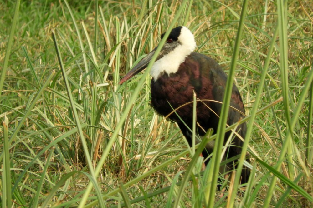 We only saw a few Woolly-necked Storks, the Asian race is sometimes treated as a separate species from the one in Africa on the basis of bronze colouration on the wing coverts and paler face.