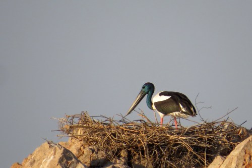 …. and at a river crossing we saw the magnificent Black-necked Stork ….
