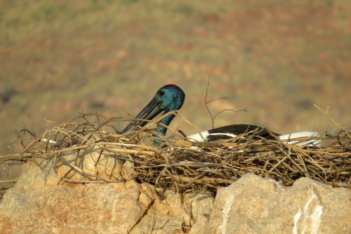 The boat took us near an island where a pair of Black-necked Storks were nesting.