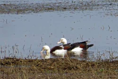 Dabbling around the edge around was a trio of Pink-eared Ducks. You have to look hard to see the ‘pink ears’ but can just make out a small pink area behind the dark surround to the eye.