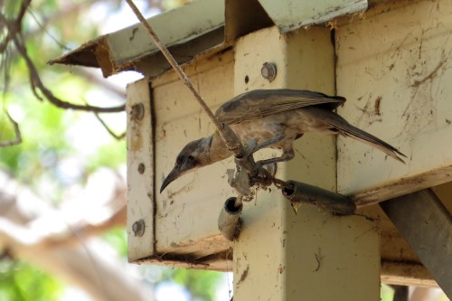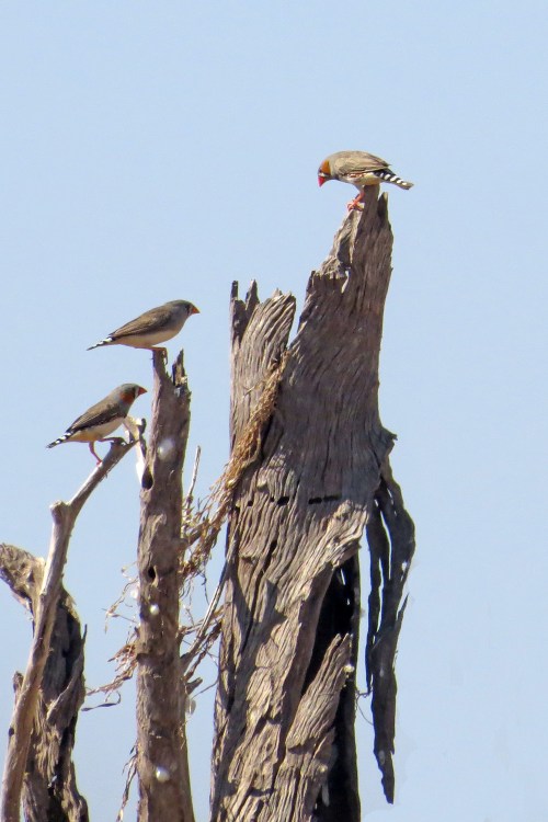If there was one bird I really wanted to see in the Kununurra/Wyndham area it was the exquisite Gouldian Finch, named after by ornithologist John Gould after his wife Elizabeth. These drinking bowls were our best chance but we also visited an area where some nest boxes had been put up for them. It was my turn in the front seat of the lead vehicle and as we arrived I caught a glimpse of four finches in flight with a strikingly banded underparts. These may have been Gouldian Finches but no-one else saw them well and we will never know for sure. Later back at the camp site we waited and waited ….