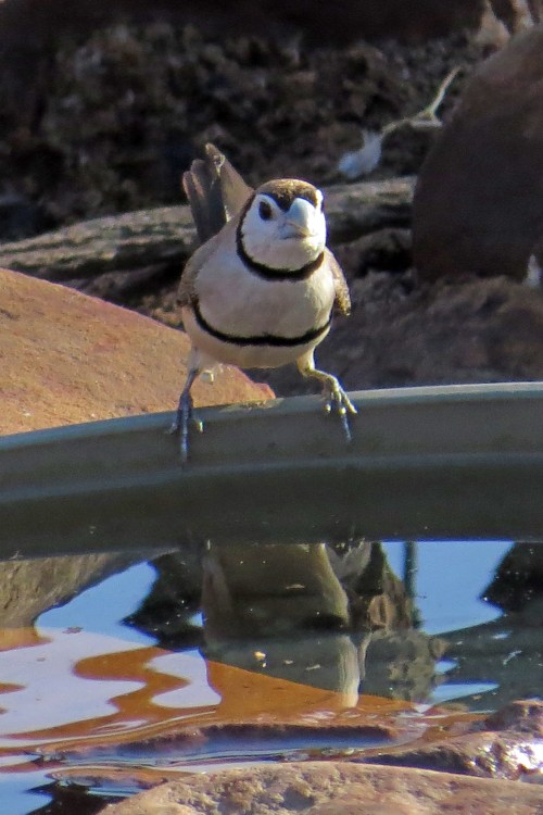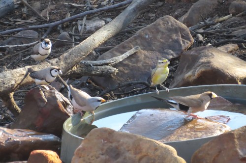 The pools in the riverbed had dried up but people at the campsite had filled up metal containers for the birds to drink from. We had cracking views of Double-barred Finches …