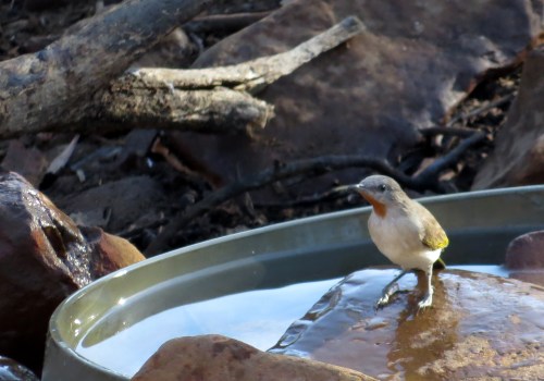 However at a nearby overflow pipe Red-headed Myzomelas, a tiny species of honeyeater, arrived for a drink.