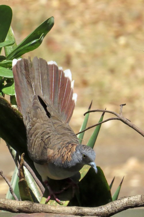 We were lucky that the staff had placed some drinking containers outside the shop and as the temperature rose to over 37 degrees a steady stream of birds came in to quench their thirsts. Here is a Peaceful Dove …