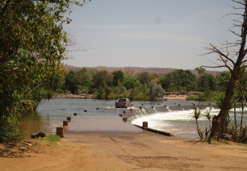 We wouldn’t see a paved road again (apart from a few short stretches over bridges) until we were almost at Kununurra in three days time. It was a given, especially for those in the second vehicle, to be enveloped in dust at all times. Note the radio aerial on the left of the bonnet has snapped of from all the vibration.
