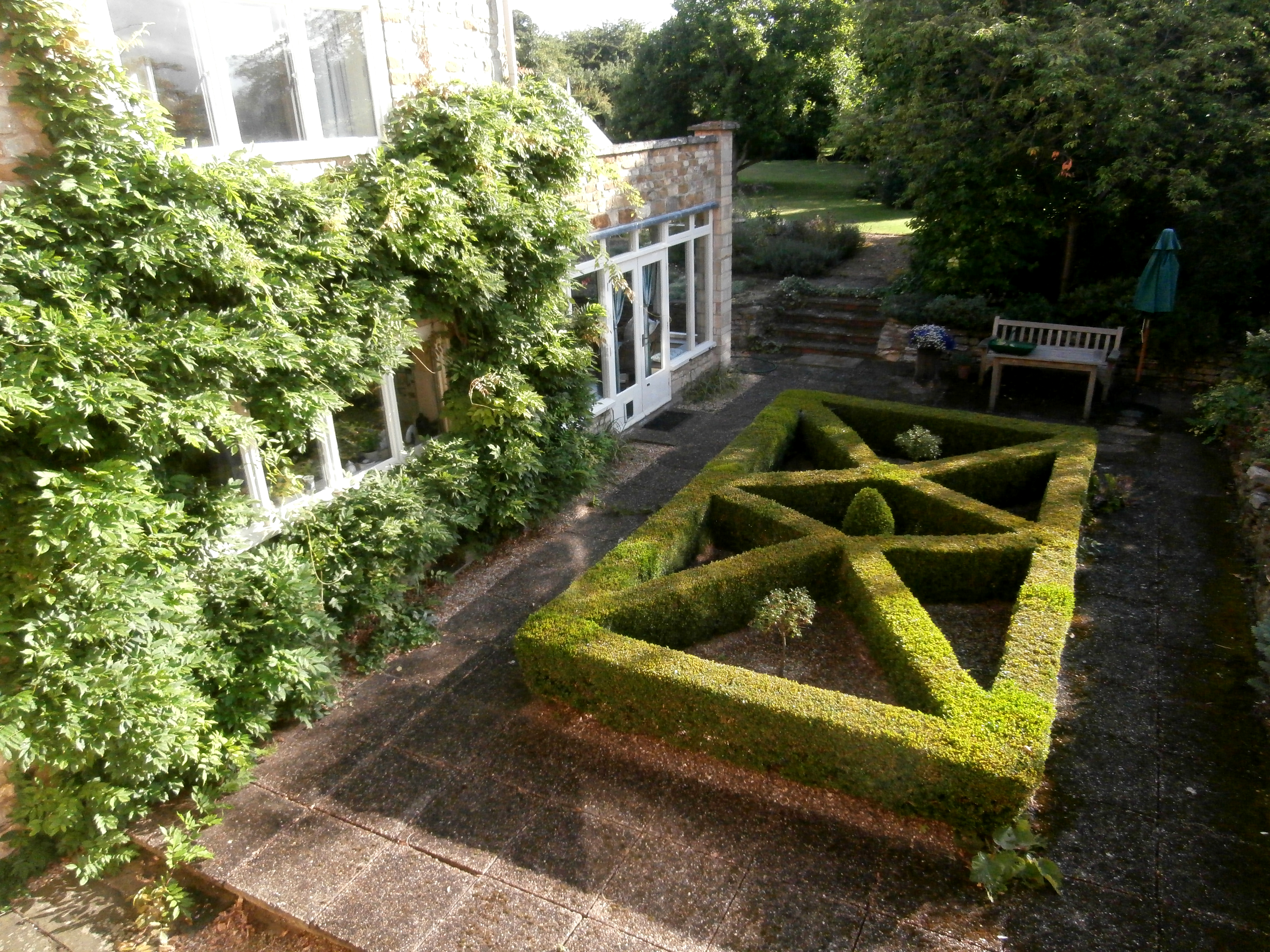 Once the workmen had gone I could resist climbing the scaffolding to get this view of our garden.