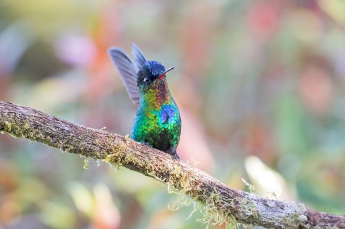 Fiery-throated Hummingbird, hummers seldom show off all their iridescent colours in a single photo. Copyright Pete Morris/Birdquest