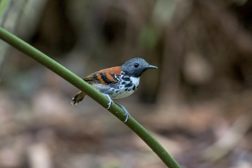 Chestnut-backed Antbird, another rainforest speciality. Copyright Pete Morris/Birdquest