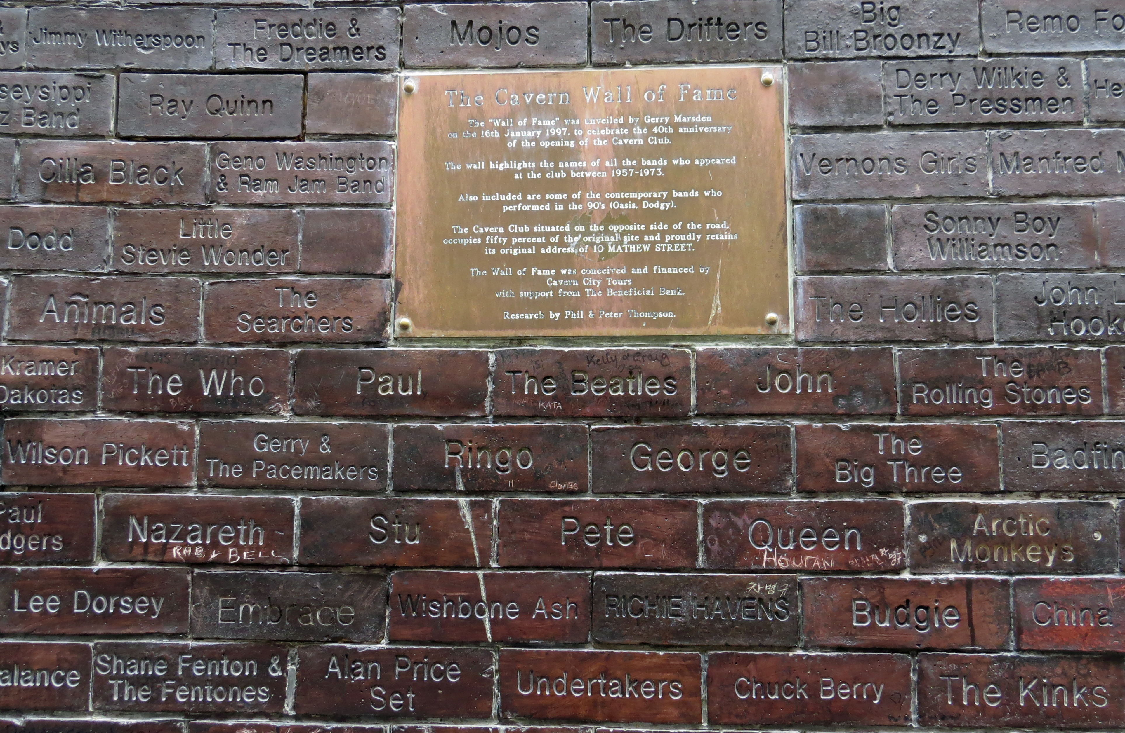 Across the road from the entrance to the Cavern is the ‘wall of fame’ commissioned by Gerry Marsden of Gerry and the Pacemakers which lists all the artists who played at the club in the 60s and 70s and few who have played more recently since it was refurbished. Centre stage, of course, is kept for the ‘fab four’, the Beatles, who not only put Liverpool on the world’s musical map but changed the face of popular music for ever.