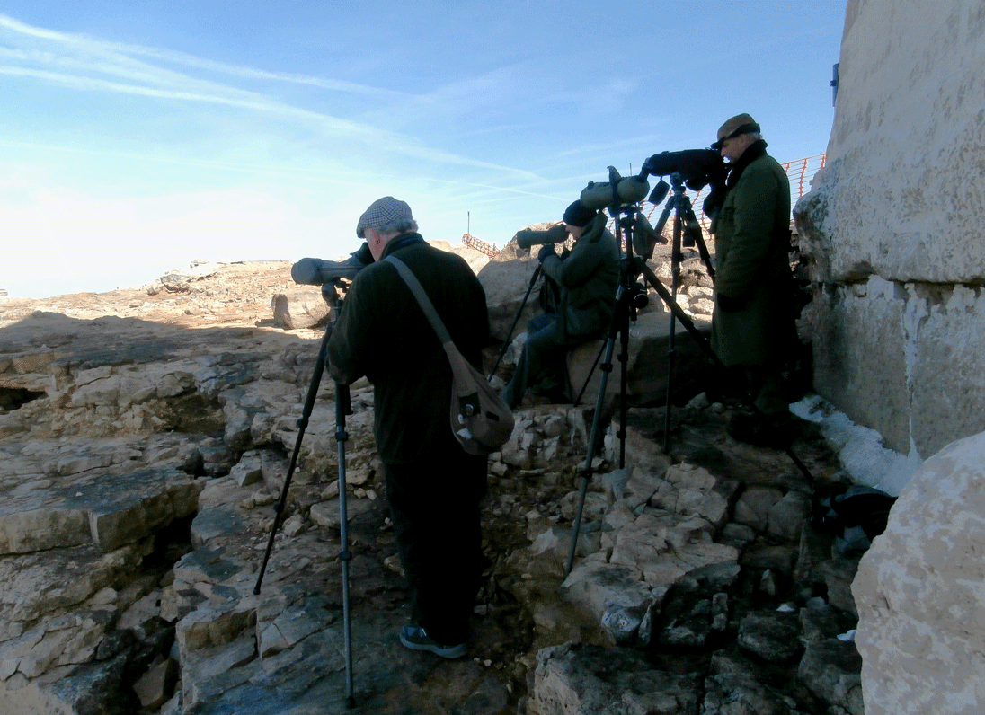 On the 15th I visited Portland. There were very few grounded migrants but seawatching was pretty good with Hobby, Merlin, Common Scoter, two species of Diver and as mentioned above, Puffins seen. Seawatching at Portland Bill. Out of the wind and out of the sun.