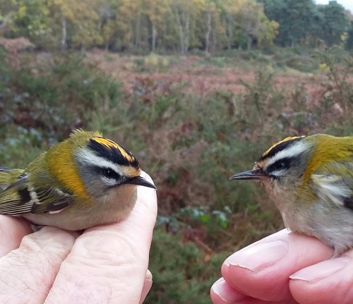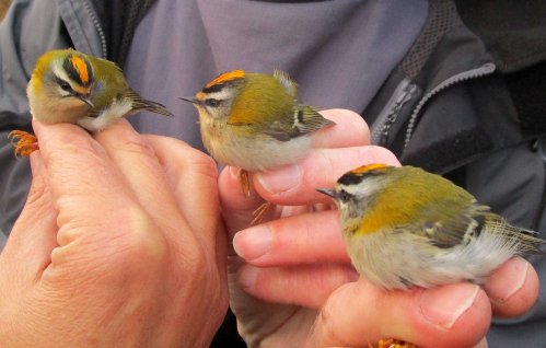 We have caught lots of birds this autumn and got some good retrap data on birds from previous winters. Most birds ringed have been finches and tits but one highlight was this tiny Firecrest (photo by Terry Elborn).